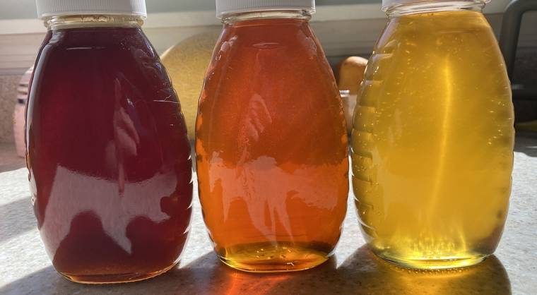 Dark amber honey: Harvested in late August through late September, this dark amber honey is likely from goldenrod and