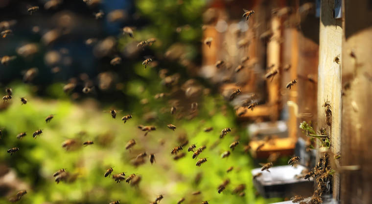 Just as we were about to suit up and add some more boxes with frames to the hive, the buzzing turned into the roar of a tornado as the bees circled into a giant funnel that rose more than 20 feet into the air above the hive. Because we have witnessed swarms before, we knew exactly what we were seeing; unfortunately, we were not expecting a swarm since we had gone into the hive a few weeks prior to reverse the boxes and add more frames of drawn comb so that the bees did not feel crowded.